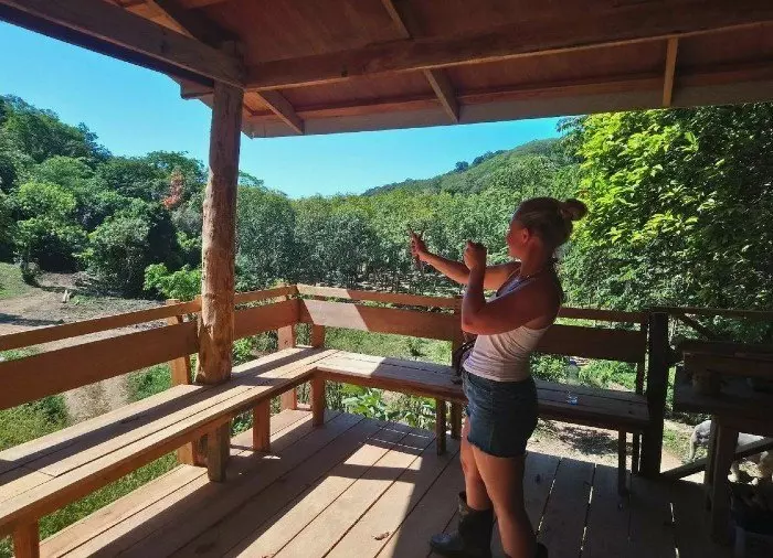 Retki huipentuu näköalatasanteelle, missä on vuorossa vähän erilainen aktiviteetti: tehtävänäsi on nimittäin pyöritellä palloja savesta, norsunlannasta ja siemenistä. Nämä ”siemenpallot” ammutaan tasanteelta isolla ritsalla, ja muutaman kuukauden kuluttua niistä kasvaa norsuille ruokaa.