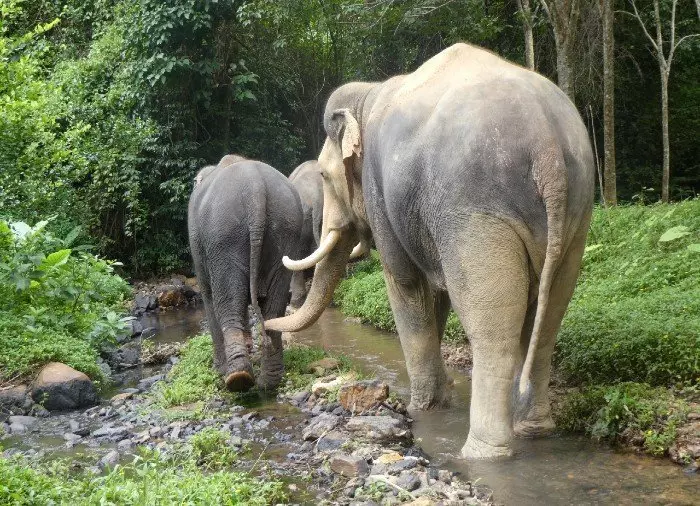 Sinut noudetaan hotelliltasi, mistä ajetaan kohti Koh Lantan eteläosassa sijaitsevaa Following Giants -norsukeskusta. Päivä alkaa itse projektin esittelyllä, ja tässä yhteydessä tapaat myös oppaasi ja Rayn, keskuksen omistajan. Opas käy läpi norsukeskuksen turvallisuusohjeet ja antaa sinulle kumisaappaat. Tämän jälkeen suuntaat oppaan johdolla viidakkoon, missä voit seurata norsujen ruokailua, keskinäistä seurustelua, uimaretkiä ja mutakylpyjä, jotka ovat erityisen suosittuja kuumina päivinä! Kuulet norsujen hyvin erilaisista luonteenpiirteistä ja karusta menneisyydestä. Opas kertoo myös viidakon muusta luonnosta, puista ja yrteistä ja siitä, miten niitä käytetään sekä ihmisten että norsujen lääkkeinä.