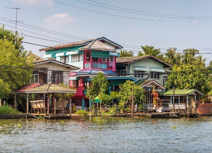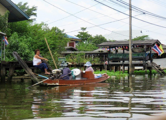 Museokierroksen jälkeen kävellään lyhyt matka Chao Phraya -joelle, jota kuninkaiden joeksikin kutsutaan, ja perillä nouset perinteiseen pitkähäntäveneeseen. Vene kuljettaa sinut Länsi-Bangkokiin tunnelmalliseen Thonburin kaupunginosaan lukemattomien kanavien eli ”klongien” muodostaman labyrintin läpi. Jokapäiväinen kaupankäynti Bangkokissa tapahtui ennen vanhaan pääasiassa kanavissa ja niiden varrella, minkä ansiosta eurooppalaiset kauppamatkustajat antoivatkin Bangkokille lempinimen ”Idän Venetsia”. Tänä päivänä näiden rauhaa huokuvien ja ainutlaatuisen viehättävien vesiteiden merkitys paikallisväestölle on edelleen suuri. Kanavien varsille on rakennettu pilarien päällä keikkuvia taloja, joista johtavat pienet portaat veteen. Voit nähdä asukkaiden pesevän portailla pyykkiään tai hiuksiaan. Verannoilla istuskelevat pikkulapset ja mummot odottelevat postivenettä tai ohi seilaavaa jäätelönmyyjää. Tämä Bangkokin kaupunginosa on kaikin tavoin täysi vastakohta ydinkeskustan tiheälle rakennuskannalle, pilvenpiirtäjille, kohoradoille ja moottoriteille.