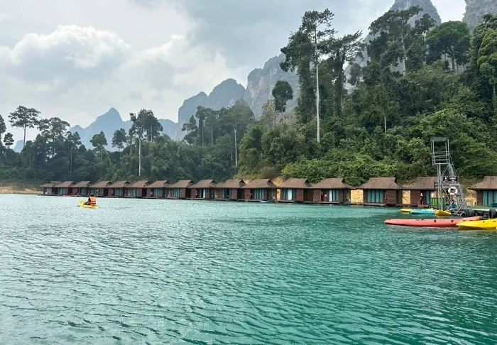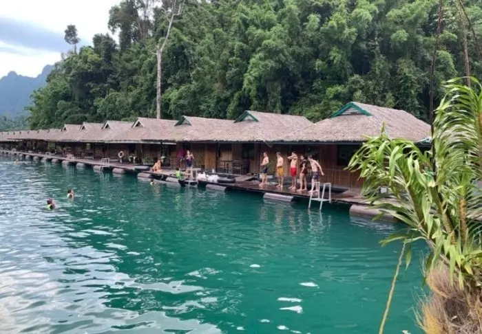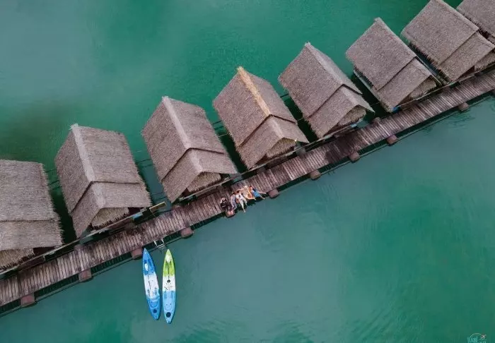 River Kwai Jungle Rafts on flotelli eli lautalla kelluva hotelli – ainutlaatuinen majoituspaikka, joka muuttaa käsityksesi luksuksesta! Flotelli kelluu Kwai-joessa ja se on ankkuroitu paikalleen vakituisesti. Rannalle päästään laskusiltaa pitkin.