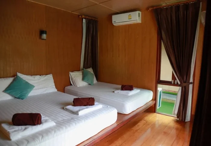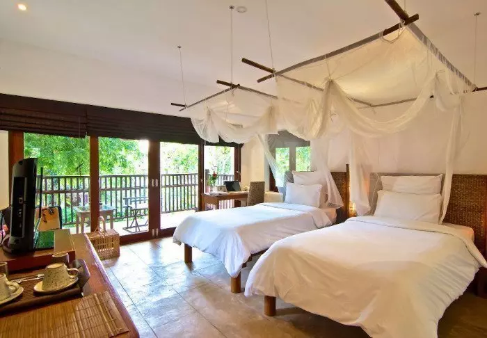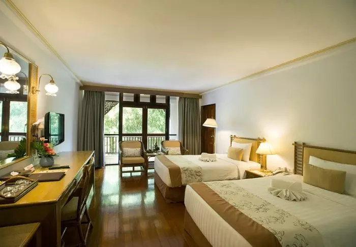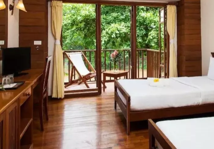 Lomakohteessa on 42 mukavaa huonetta, jotka on sisustettu perinteiseen thaityyliin tiikkipuukalusteilla. Kaikissa huoneissa on mukavat vuoteet, ilmastointi, WiFi, tallelokero, vedenkeitin teen ja kahvin valmistukseen sekä vaatekaappi ja kirjoituspöytä. Kylpyhuone on mukava ja yksinkertainen suihkuineen ja hygieniatarvikkeineen. Voit istua parvekkeella kahvikupillisen äärellä ja nauttia hyvin hoidetun puutarhan ja Yuam-joen rauhasta ja näkymistä, samalla kun lomakeskuksen puutarhuri kastelee puutarhan kasveja.