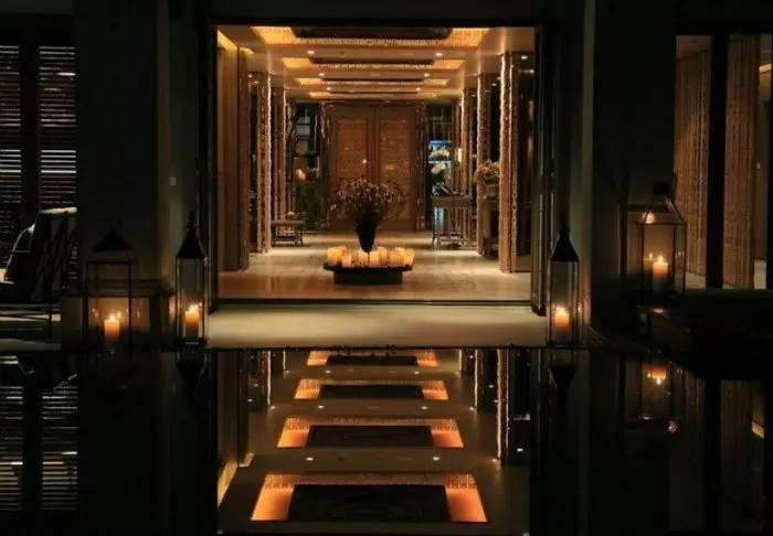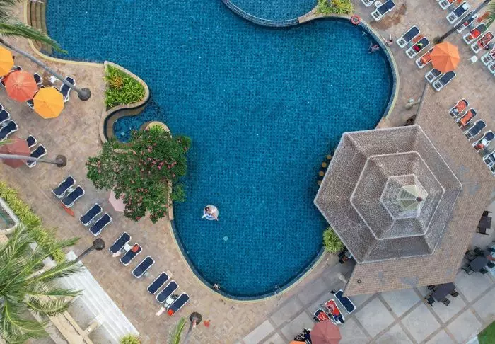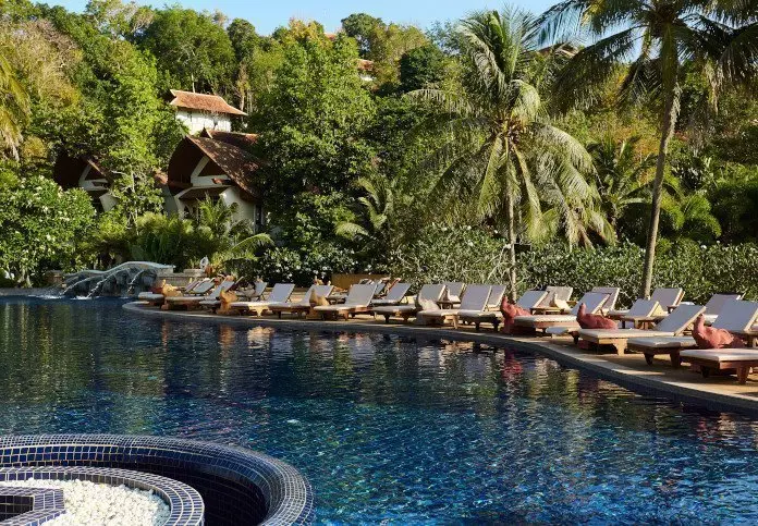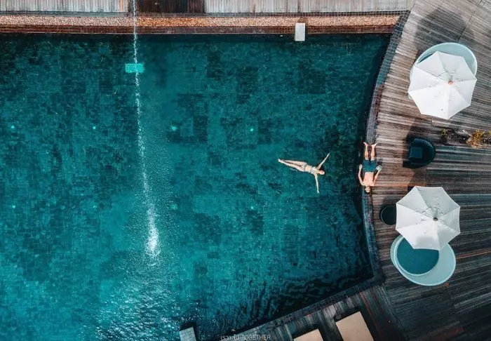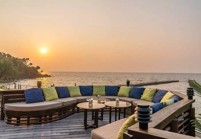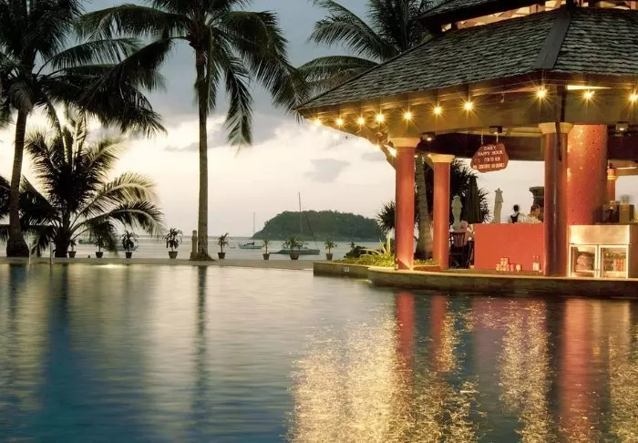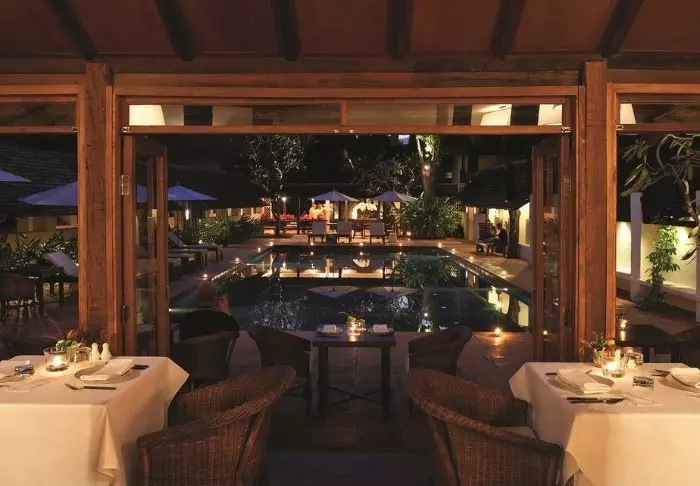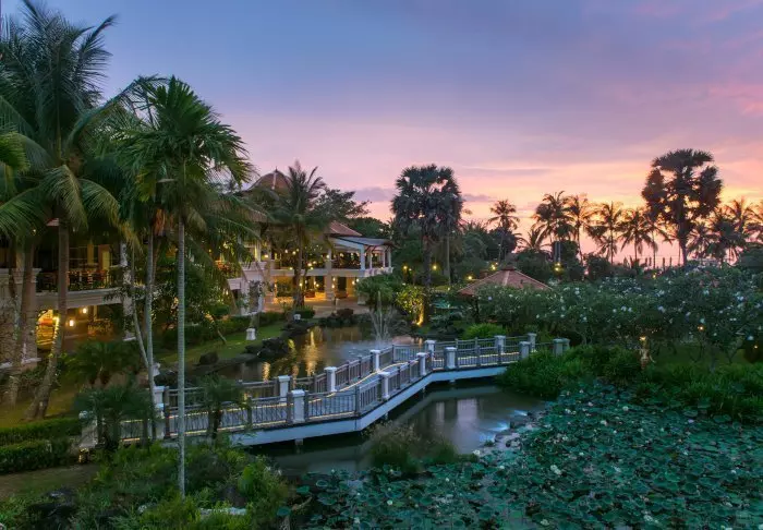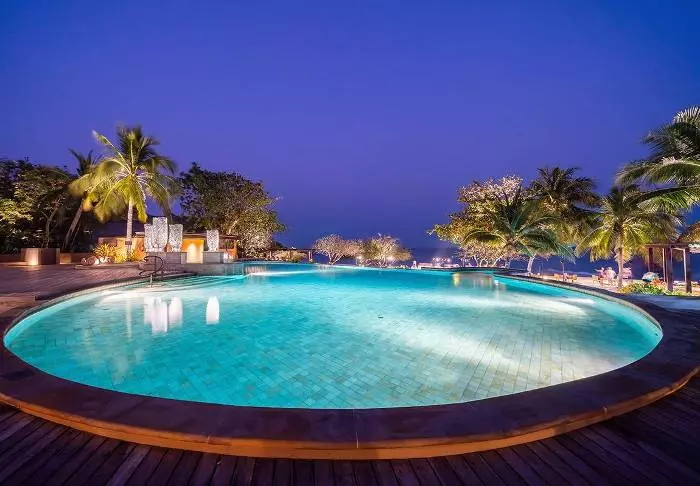 Aurinko laskee. Pulahdat vielä kerran ”rooftop”-altaaseen ennen kuin suuntaat huoneeseesi pukeutumaan illallista varten. Voit vielä nähdä auringon, joka on juuri vaipumassa Andamaanienmeren aaltoihin. Taivas hehkuu punertavan violettina, ja kaskaat sirittävät ympärilläsi.