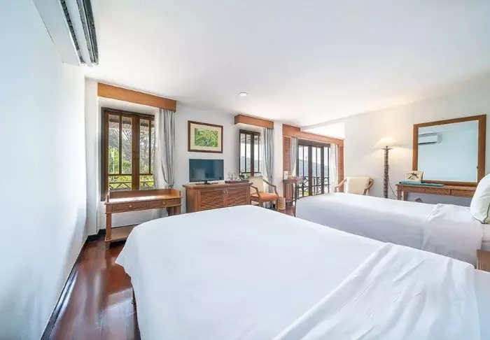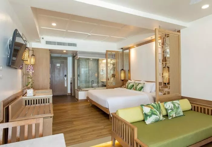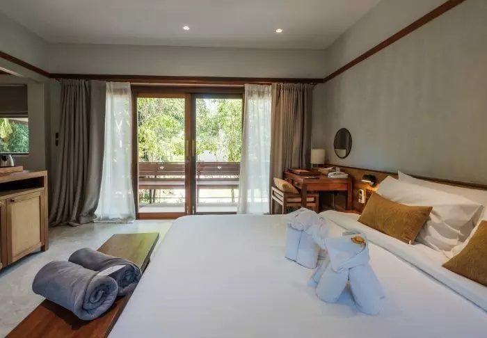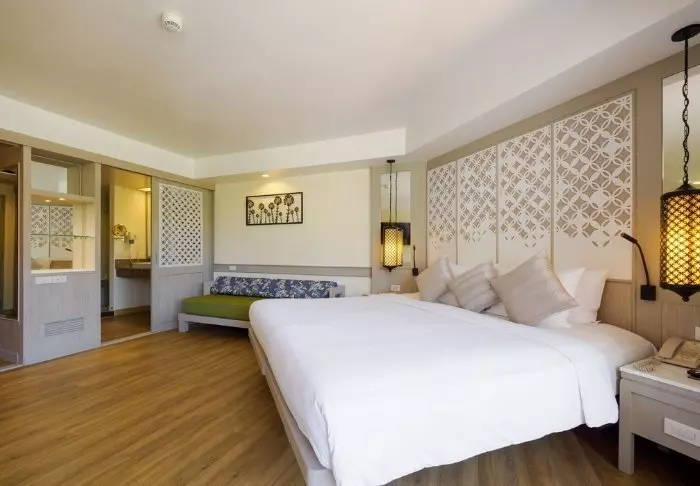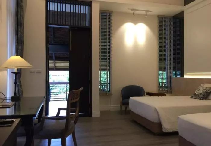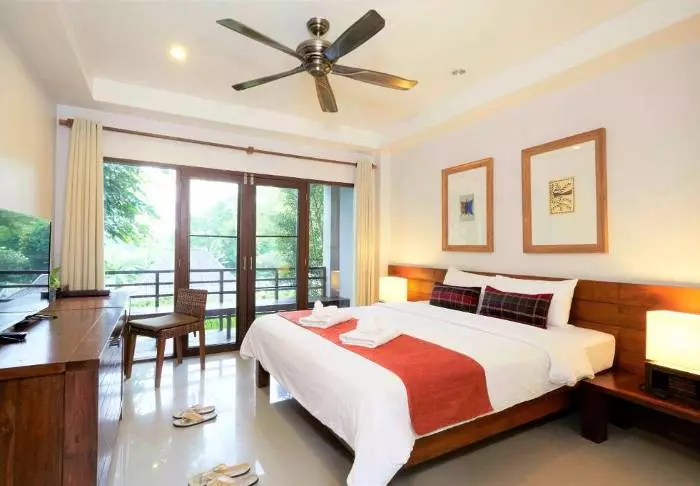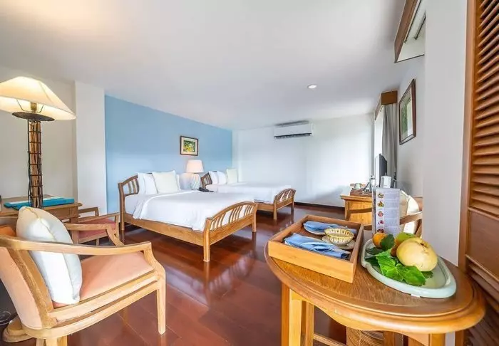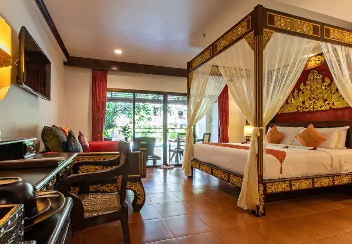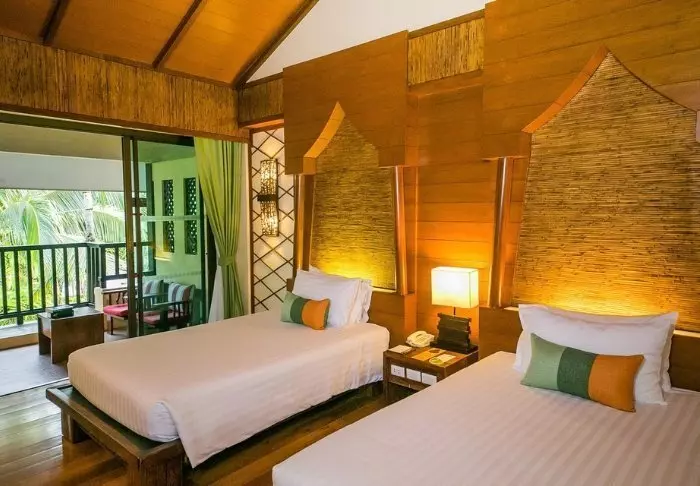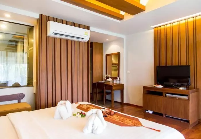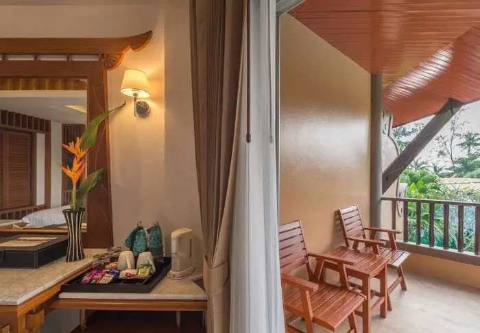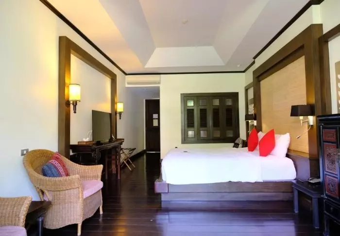 Thai-tyyliin sisustettuja huoneita koristavat kauniit puukaiverrukset ja upeat kuviot matoissa ja tyynyissä. Huoneissa on TV, kahvin- ja teenkeittotarvikkeet, ilmastointi, tallelokero, minibaari, hiustenkuivaaja ja sateenvarjo, jonka voit napata mukaasi trooppisen sadekuuron yllättäessä. Kaikissa huoneissa on oma parveke.
