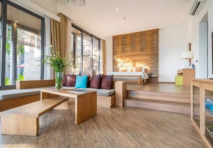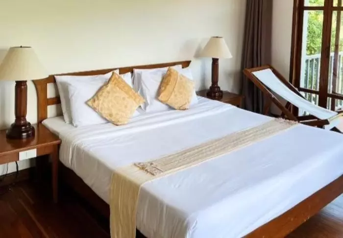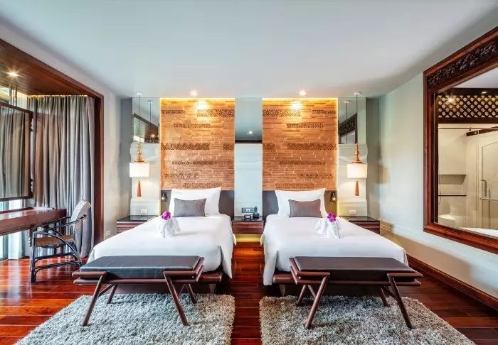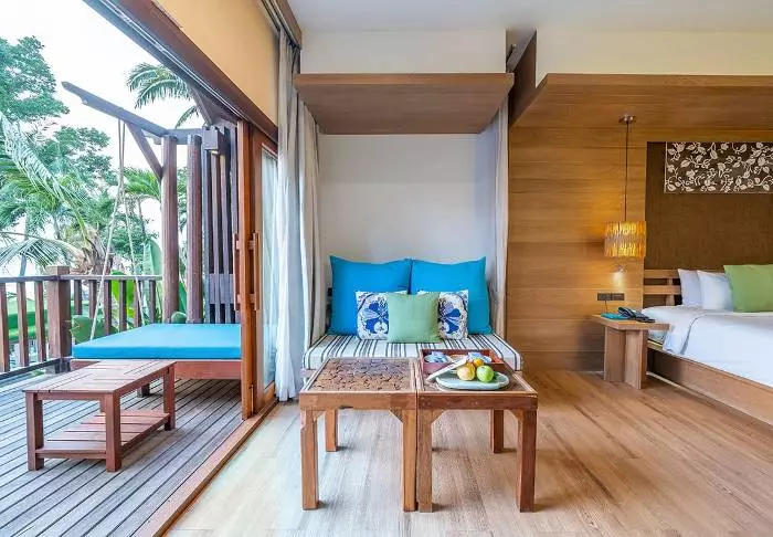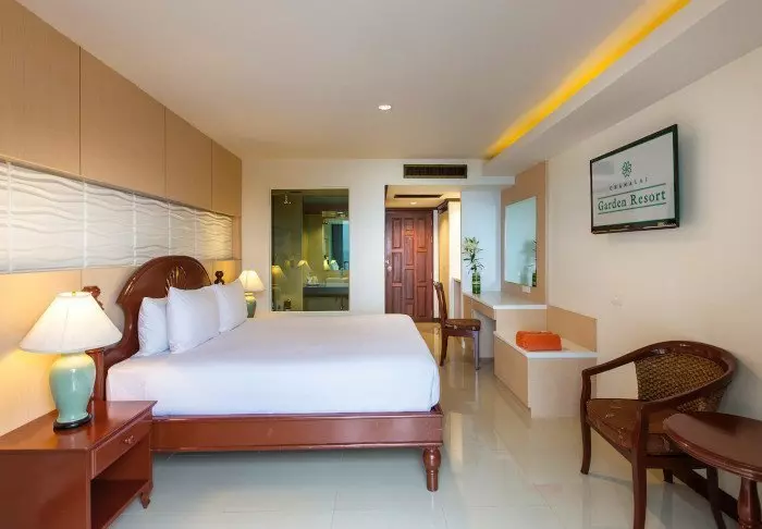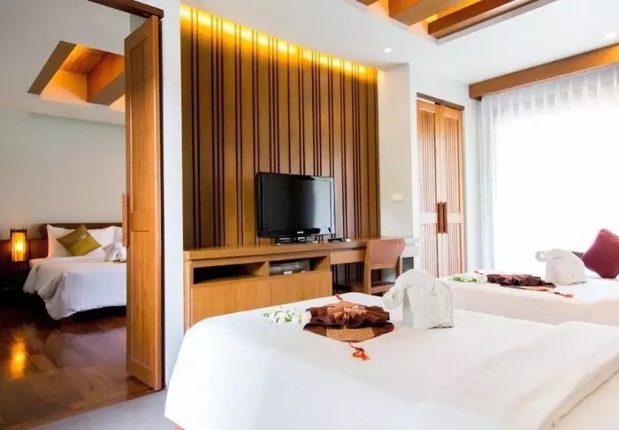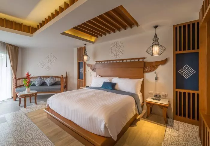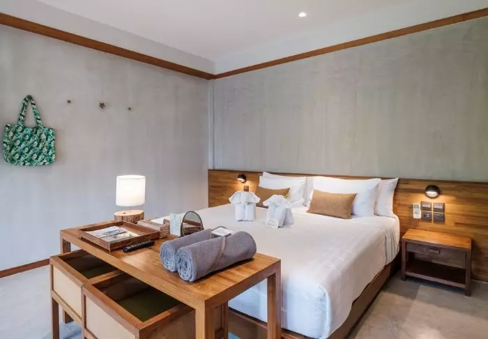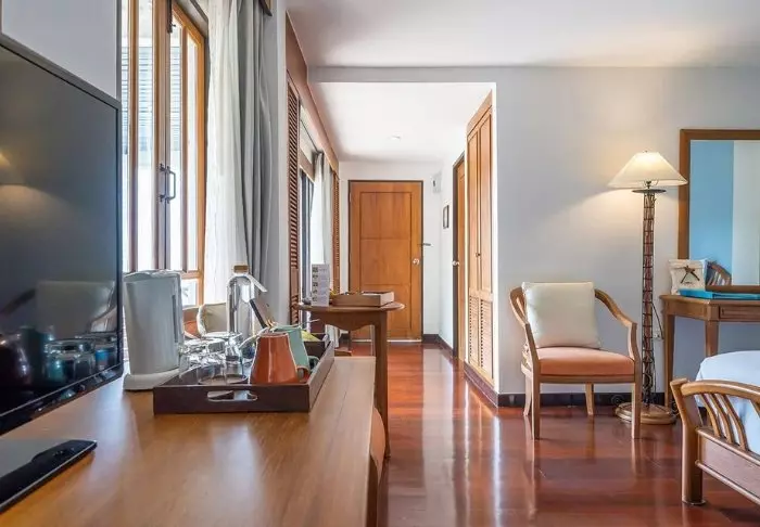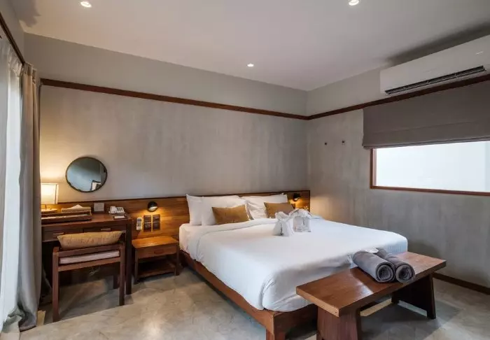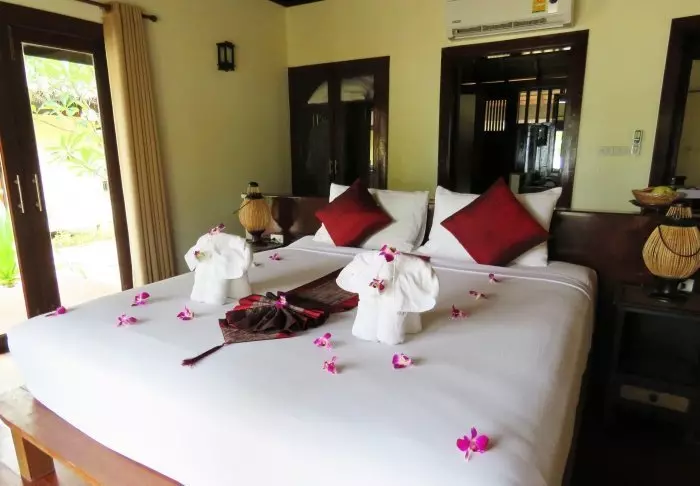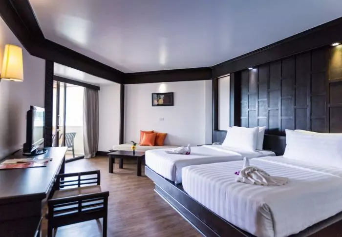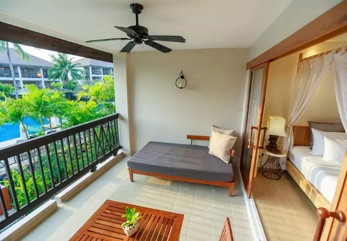 Thai-tyyliin sisustettuja huoneita koristavat kauniit puukaiverrukset ja upeat kuviot matoissa ja tyynyissä. Huoneissa on TV, kahvin- ja teenkeittotarvikkeet, ilmastointi, tallelokero, minibaari, hiustenkuivaaja ja sateenvarjo, jonka voit napata mukaasi trooppisen sadekuuron yllättäessä. Kaikissa huoneissa on oma parveke.