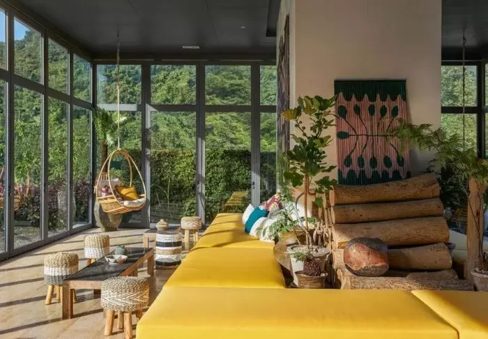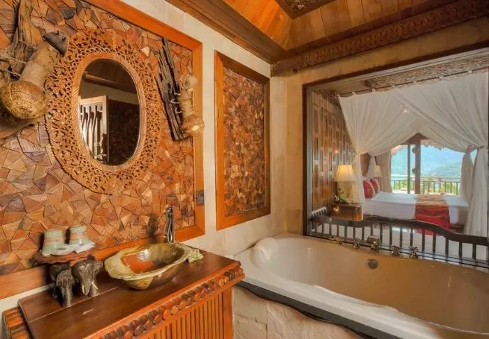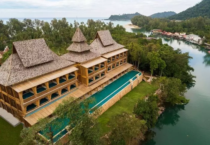 Resort on rakennettu kokonaan puusta, joten sen hieno arkkitehtuuri sulautuu kauniisti ympäröivään luontoon.