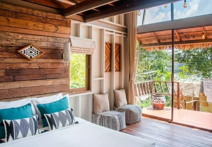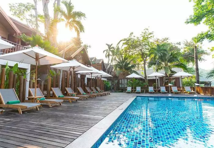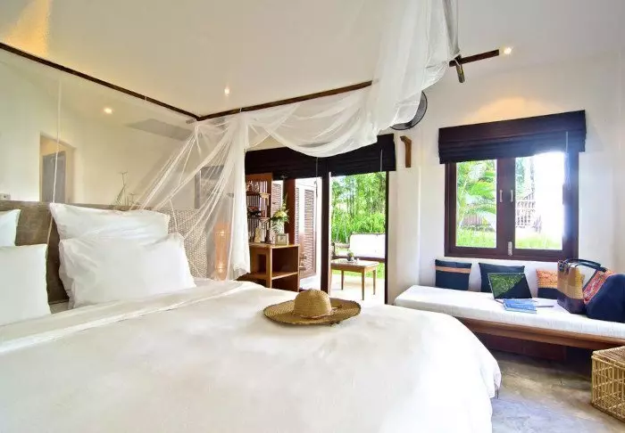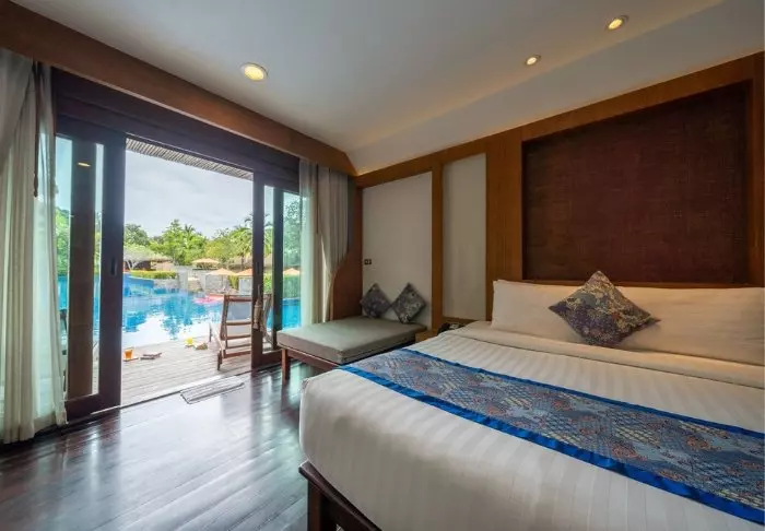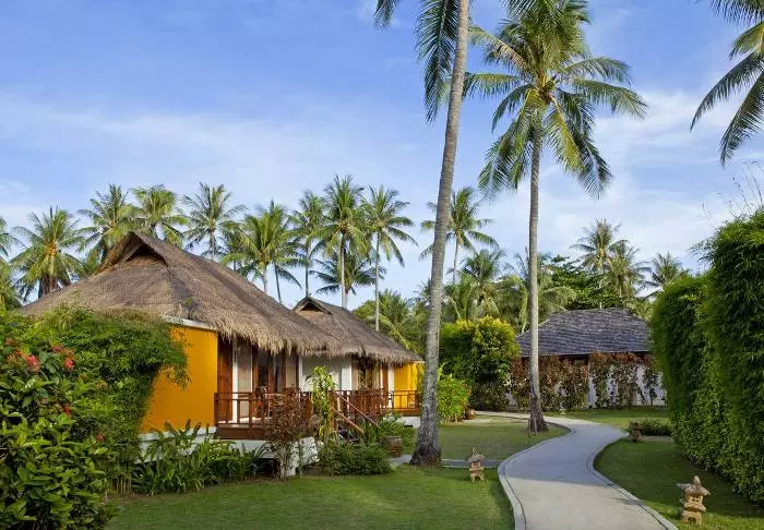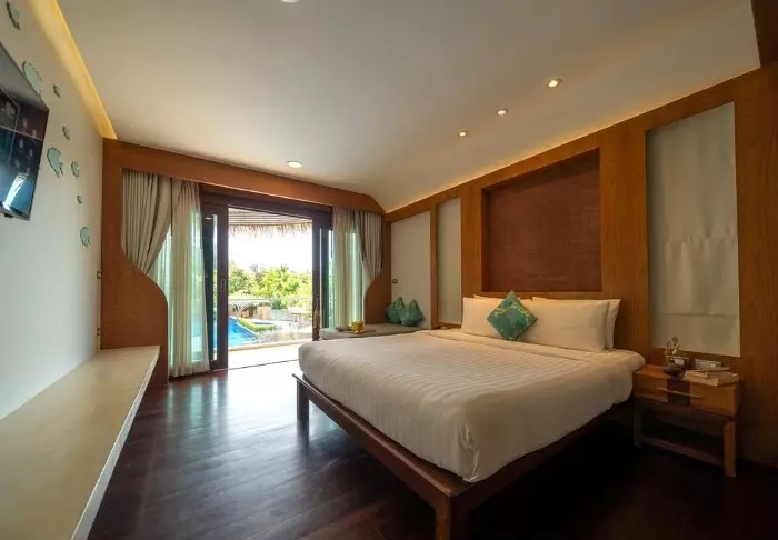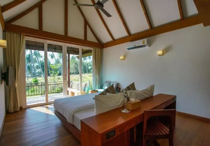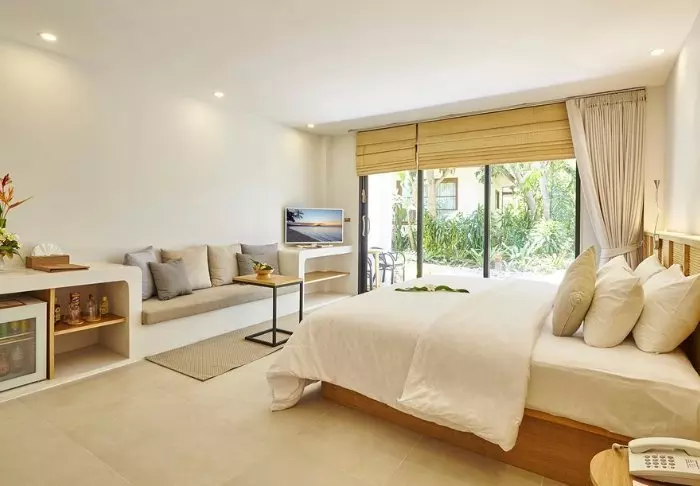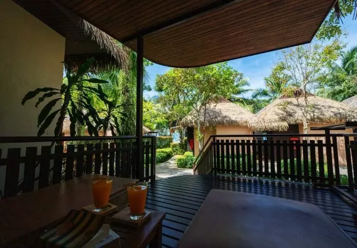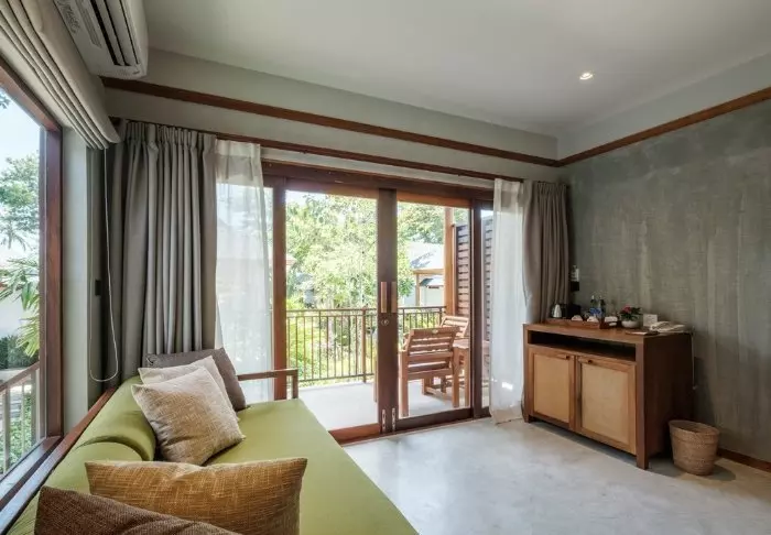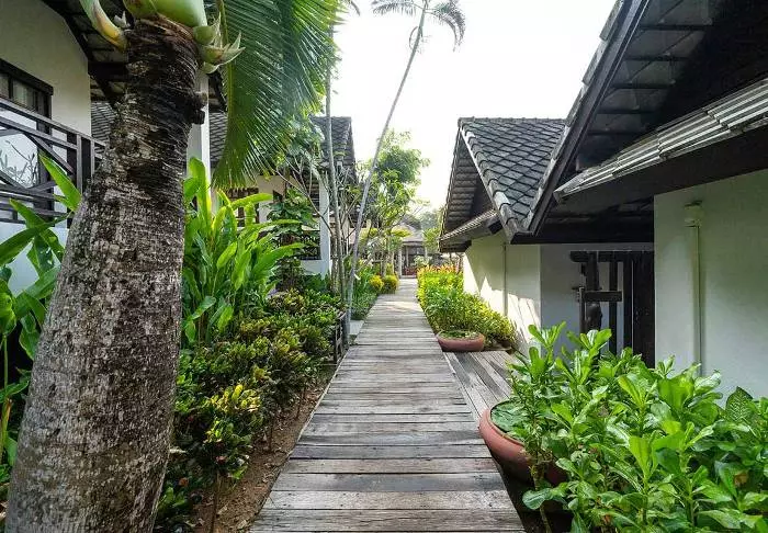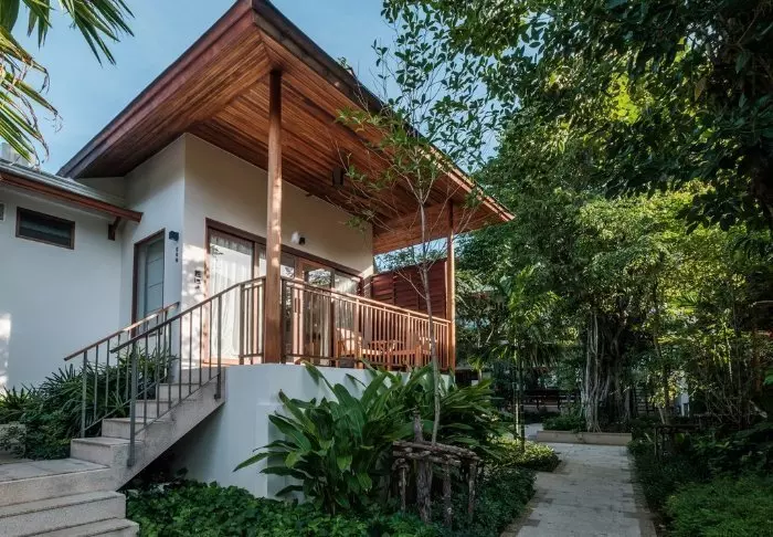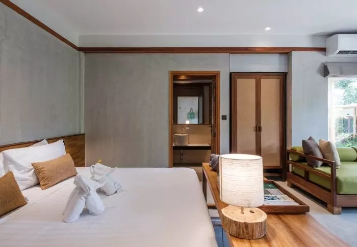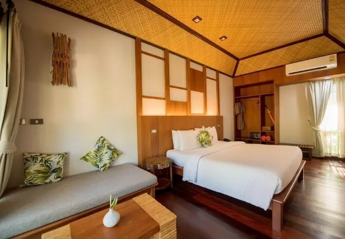 Resortia ympäröivät palmut ja trooppiset puut. Rehevän puutarhan keskellä on bungaloweja ja erillinen hotellirakennus, josta on hieno näköala ja pääsy uima-altaalle. Kauniisti luonnonmateriaaleilla sisustettuja huoneita on yhteensä 80, ja jokainen niistä on kooltaan vähintään 35 m2. Viihtyisissä huoneissa yhdistyvät tyylikkyys ja thaimaalainen charmi. Jokainen huone on suunniteltu mukavuutta ja rauhaa ajatellen. Kaikissa huoneissa on WiFi, ilmastointi, minibaari, tallelokero ja televisio sekä teen- ja kahvinkeittotarvikkeet. Pienemmällä vuodesohvalla on mukava istuskella ja katsella vehreää puutarhaa. Kaikkiin huoneisiin kuuluu myös oma kalustettu terassi tai parveke, jossa voit rentoutua ja nauttia maisemista, rauhasta ja hiljaisuudesta. Kylpyhuoneessa on sekä suihku että kylpyamme, kylpytuotteita ja hiustenkuivaaja.