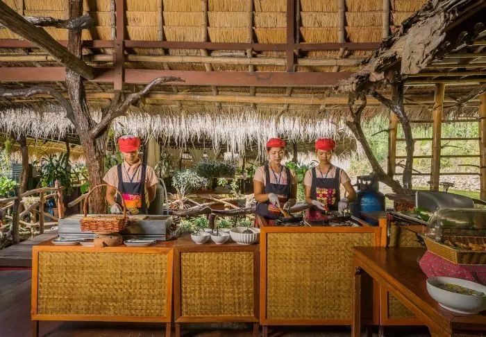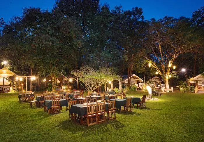 Resortissa on useita ravintoloita ja baareja. Pääravintola Sala Rimnam sijaitsee jokirannan vehreässä maisemassa, ja sen avoimessa keittiössä valmistetaan sekä länsimaista ruokaa että thaimaalaisia herkkuja. La Casa on erikoistunut italialaiseen ruokaan, kun taas puutarhaan sijoitelluista pienistä terasseista koostuvan Suan Chainamin ruokalistalla on grillin antimia, tapaksia, viileitä oluita, cocktaileja ja viinejä.