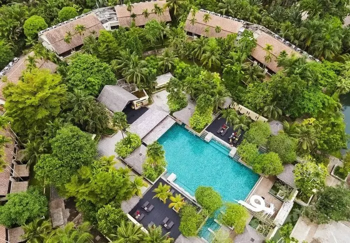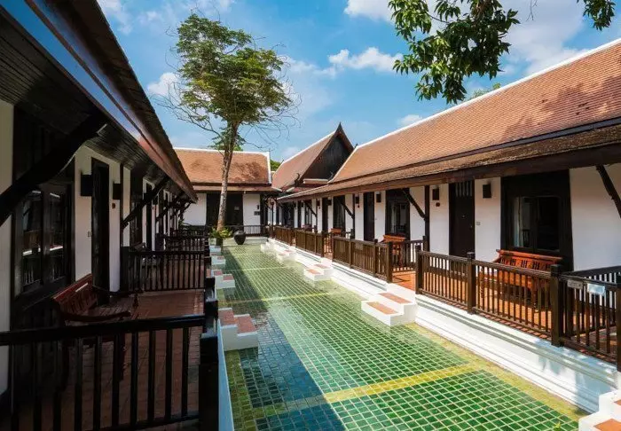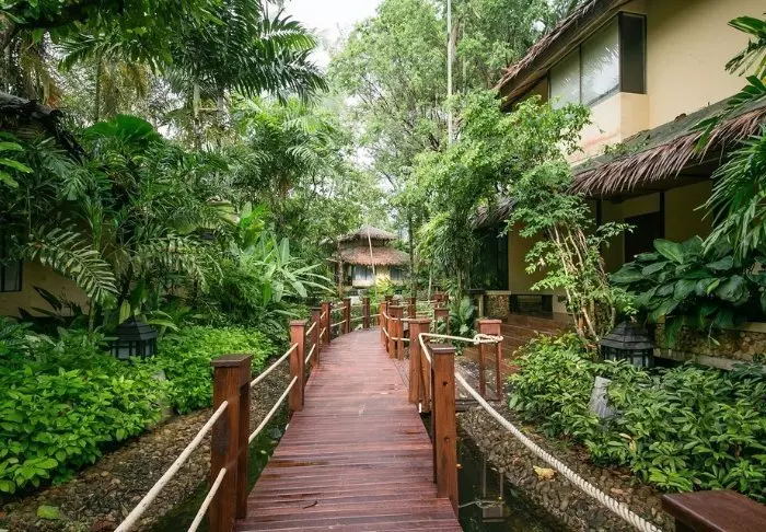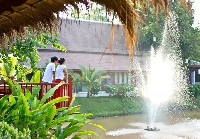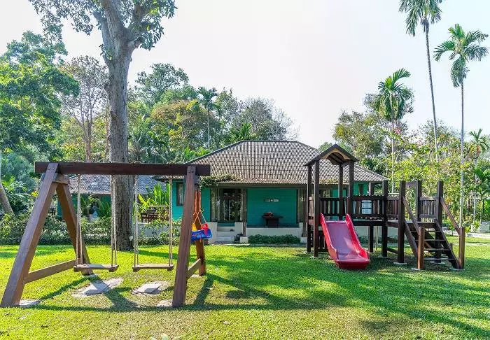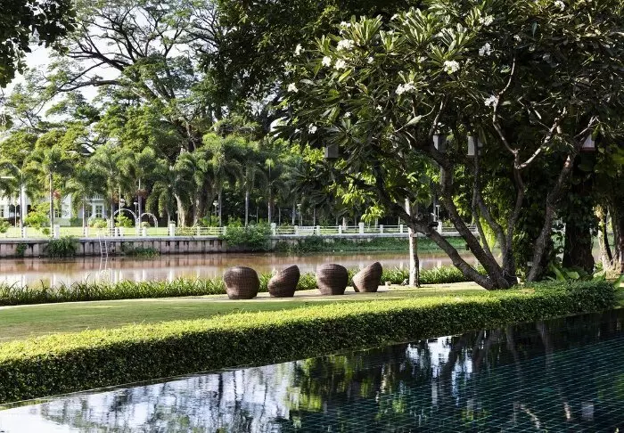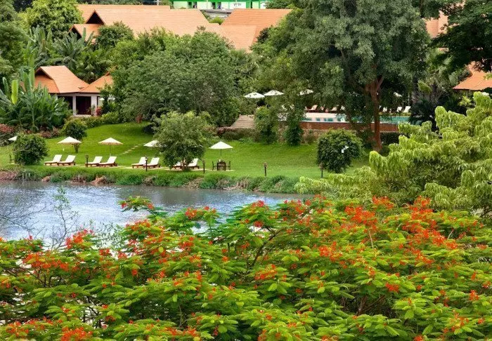 Resort on rakennettu perinteiseen lannatyyliin ja sointuu kauniisti ympäristöönsä. Rakennukset on sijoiteltu laajalle vehreälle alueelle, jossa lootuslampien ja kukkaistutusten välissä risteilevät viehättävät varjoisat polut. Isoilla nurmikoilla on lepotuoleja, joissa on mukava rentoutua ja nauttia jokimaisemista.