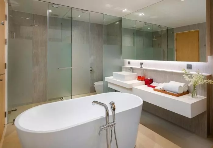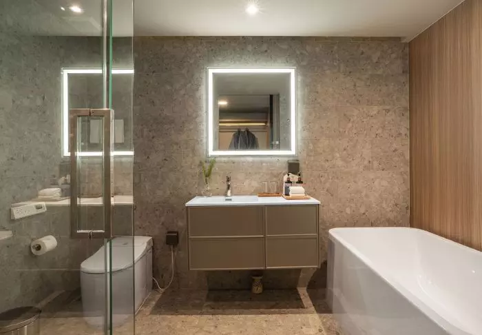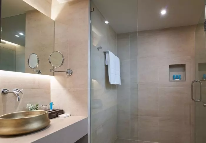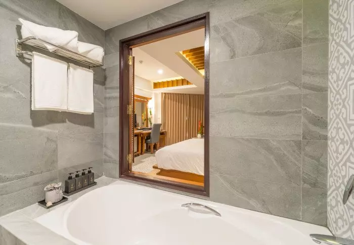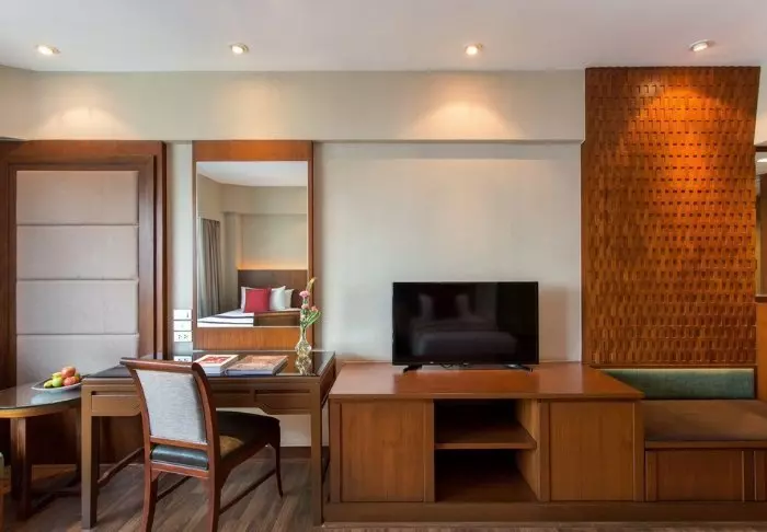 Huoneet ovat moderneja, ja ne on sisustettu vaaleilla väreillä ja puukalusteilla. Vieraiden käytössä on kirjoituspöytä ja pieni oleskelualue, johon kuuluu sohva ja sohvapöytä. Kaikissa huoneissa on ilmastointi, tallelokero, televisio, minibaari ja pieni jääkaappi. Kylpyhuoneessa on hiustenkuivaaja, kylpytuotteita, kylpytakit ja tohvelit.