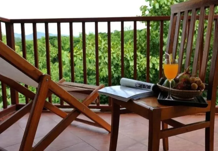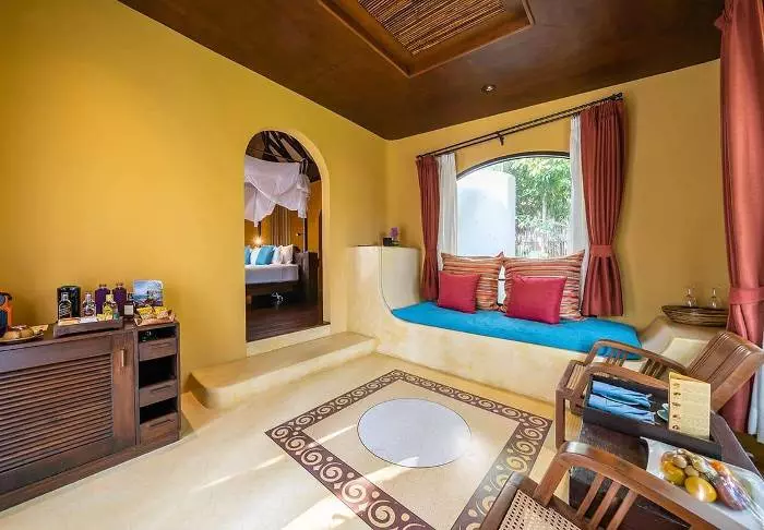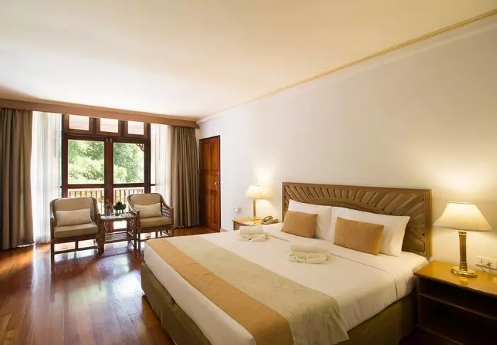 Lomakeskuksessa on 50 tilavaa huonetta, jotka on sisustettu perinteiseen tyyliin. Kaikissa huoneissa on ilmainen WiFi, ilmastointi, tallelokero, minibaari, kahvin- ja teenkeittovälineet, silityslauta ja -rauta, TV, puhelin, kirjoituspöytä ja hiustenkuivaaja sekä kylpyhuone, josta löytyy sekä kylpyamme että suihku. Parvekkeelta voit ihailla näköalaa trooppiseen puutarhaan.