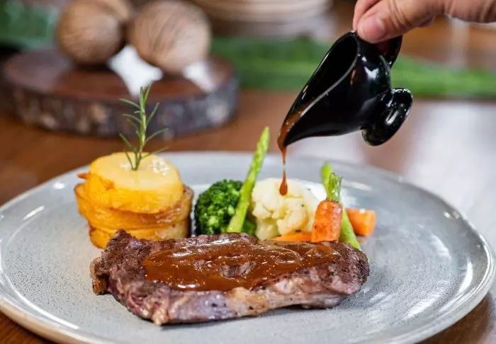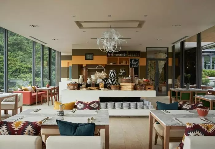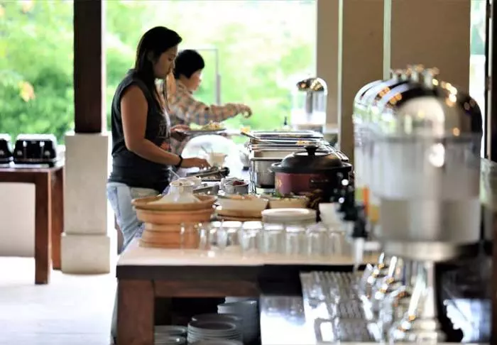 Hotellin Dum Ya -ravintolassa voit nauttia herkullisen aterian, josta on upeat näkymät maaseudulle, ja jossa aasialaiset curryt ovat erityisen suosittuja.