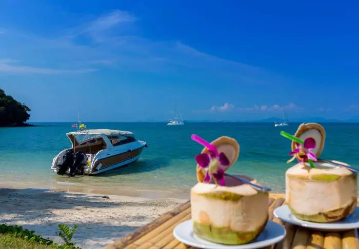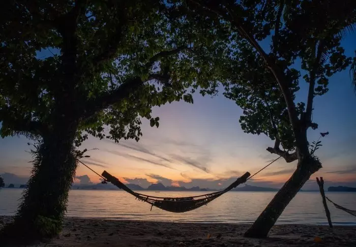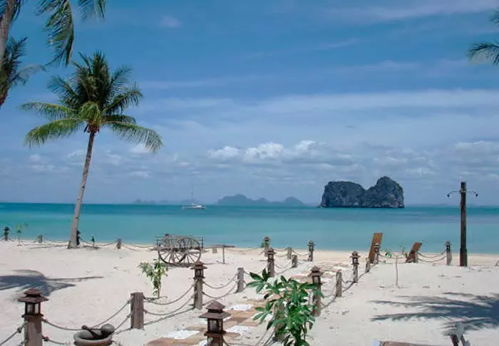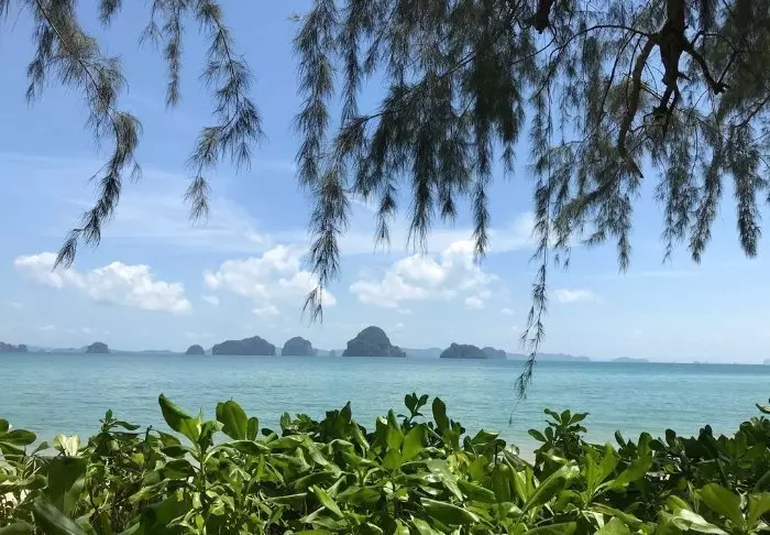 Vain kivenheiton päässä sijaitsevalla rannalla voit seurailla Aonangin ja Railayn välillä sukkuloivien perinteisten pitkähäntäveneiden liikettä. Rannalta avautuu upea näköala Andamaanienmerestä kohoaville luotisuorille karstivuorille.