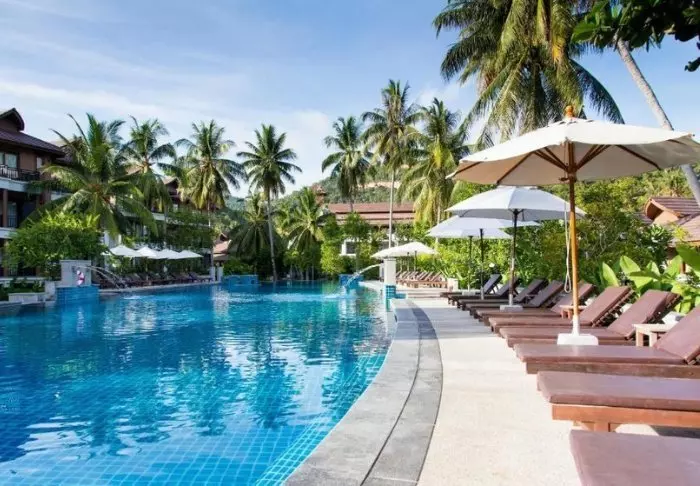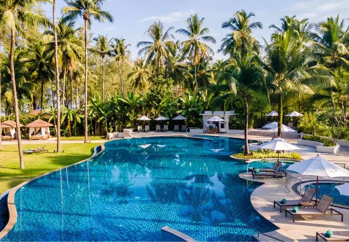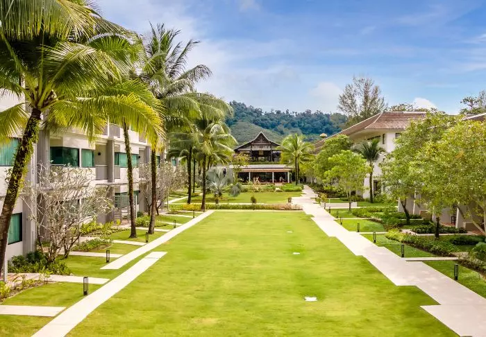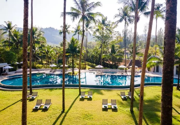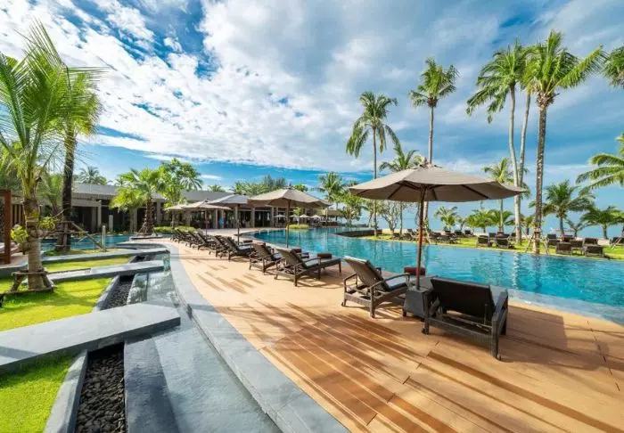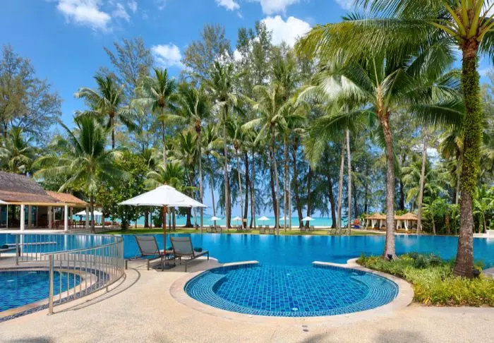 Outrigger Khao Lak Beach Resort sijaitsee vehreiden vuorten juurella aivan Bangsak-rannan vieressä. Tunnelmaa luovat vehreät kookospalmut, ja resortista avautuu kaunis merinäköala Andamaanienmerelle.