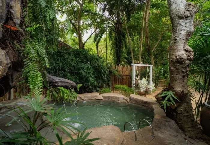 Lomakeskuksessa on myös laaja valikoima tiloja täydellisen lomakokemuksen takaamiseksi. Päivän tutkimusmatkan jälkeen voit pulahtaa suureen ulkouima-altaaseen, jota ympäröivät trooppiset puut ja kasvit. Jos haluat pysyä kunnossa kierroksellasi, lomakeskuksessa on myös pieni kuntosali.