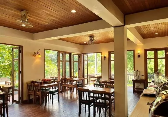 Resortin ravintola Nam Khang Restaurant on avoinna aamulla, päivällä ja illalla, ja syödessäsi voit nauttia myös kauniista näköaloista kanavalle.