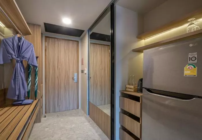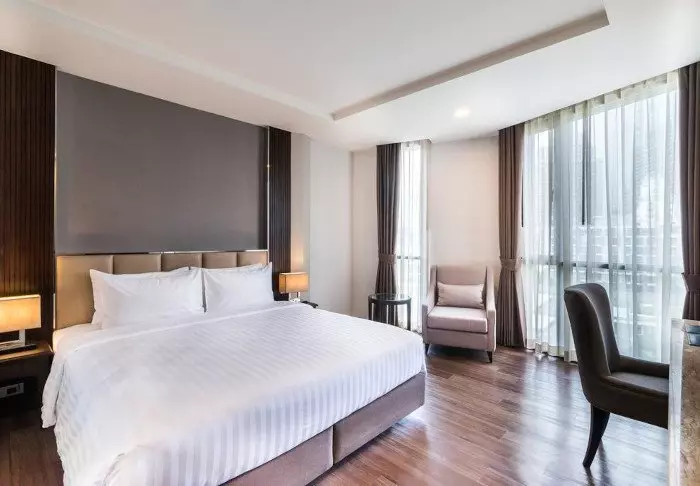 SureStay Plus on avattu vuonna 2017, joten se on yksi Bangkokin uusimmista hotelleista. Sen sisustus on tyylikkään moderni, ja näyttävä tyyli toistuu myös 85 huoneessa. Kaikissa huoneissa on WiFi, ilmastointi, TV, ilmainen pullovesi, kahvin- ja teenkeittotarvikkeet, oleskelualue ja kirjoituspöytä. Kylpyhuoneessa on suihku, kylpytakki, kylpytuotteita ja hiustenkuivaaja.