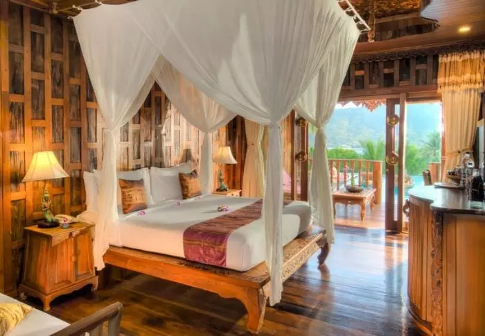 Vehreällä rinteellä sijaitseva Paradise KohYao on levinnyt useille tasoille, jotka kutsuvat nauttimaan upeista näkymistä Phang Nga Baylle. Sisustus on eksoottinen, ja sen vaaleisiin väreihin on lisätty turkoosia, joka sopii kauniisti merinäköalaan, jonka voit ottaa haltuun lomakeskuksen kaikista osista.