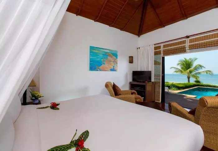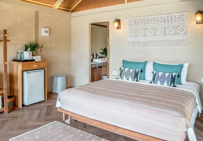Hotellissa on yhteensä 76 yksinkertaisen kauniisti sisustettua valoisaa huonetta, jotka ovat kooltaan vähintään 56 m2. Kaikissa huoneissa on WiFi, ilmastointi, hyttysverkot vuoteissa, pullovesi, minibaari, teen- ja kahvinkeittotarvikkeet, tallelokero, TV, puhelin ja kirjoituspöytä. Kylpyhuoneen varustuksiin kuuluvat kylpytakit, tohvelit, hiustenkuivaaja ja kylpytuotteet. Aamulla voit nauttia rauhasta ja juoda kupillisen kahvia omalla terassillasi.