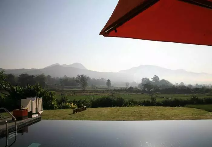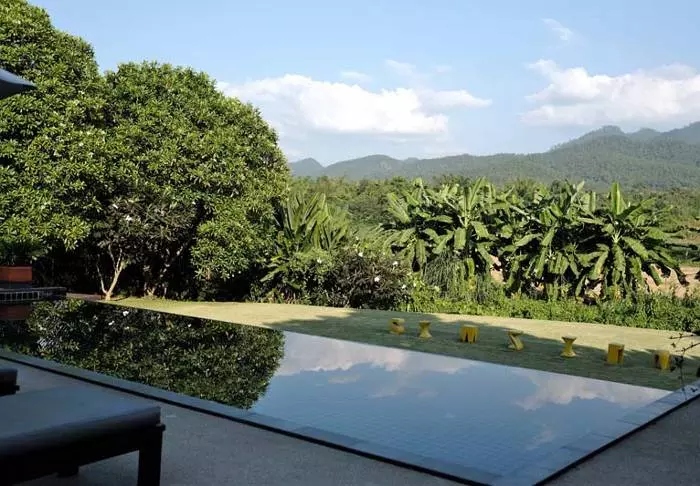 Elämysten täyttämän päivän jälkeen voit pulahtaa hotellin äärettömään uima-altaaseen, joka on kauniisti koristeltu paikallisesti tehdyillä laatoilla. Voit myös hengailla uima-altaan reunalla ja ihailla henkeäsalpaavia näkymiä vihreille pelloille ja Mae Yen -vuorelle. Siellä on myös aurinkotuoleja, joten voit levätä ja rentoutua helposti auringonsäteiden alla.