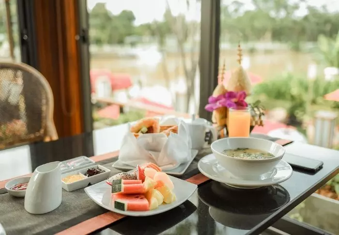 Aterioilla pääset herkuttelemaan autenttisella thairuoalla viihtyisässä avoravintolassa, josta on hieno jokinäköala. Illan pimetessä sytytetään lyhdyt, jotka luovat maagista tunnelmaa.