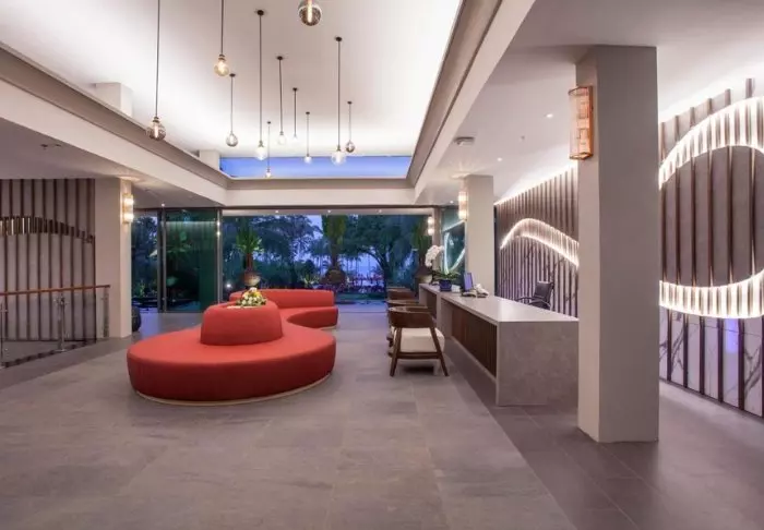Hotelli koostuu useista rakennuksista. Niitä ympäröivät vehreät, hyvin hoidetut puutarhat ja korkeat palmupuut, jotka heiluvat lempeässä tuulessa. Resortin 116 huonetta on suunniteltu siten, että ne luovat vaikutelman yksityisestä ja rauhallisesta tukikohdasta. Kaikki huoneet ovat valoisia, ja niiden moderni sisustus sopii täydellisesti yhteen ympäröivän luonnon kanssa. Kalustetulla terassilla on mukava istua, nauttia rentouttavasta aamukahvista tai hiljaisesta hetkestä ja katsella resortin rehevää puutarhamaisemaa. Huoneissa on kaikki nykyaikaiset mukavuudet, kuten WiFi, ilmastointi, tallelokero, minibaari, kahvikone ja pullovesi. Kylpyhuone on elämys jo itsessään: käytettävissäsi ovat sekä kylpyamme että sadesuihku, valikoima kylpytuotteita, hiustenkuivaaja ja kylpytakit.