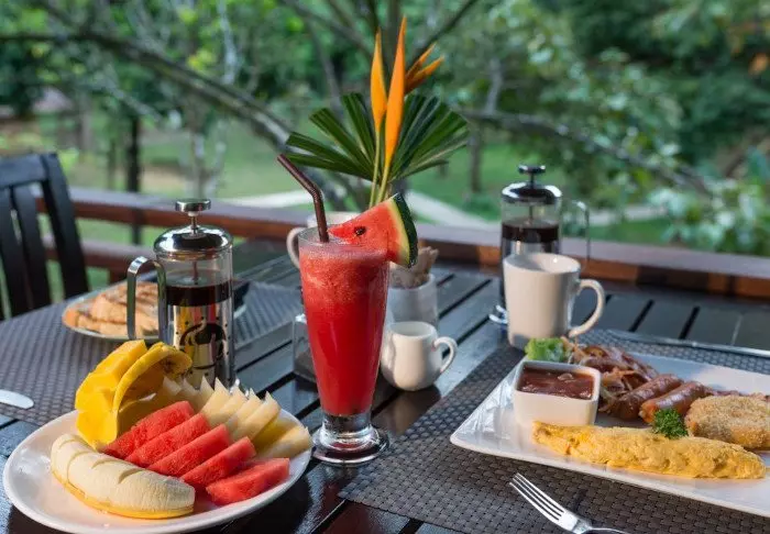 Lomakohteessa on oma ravintola, jossa tarjoillaan tuoreista paikallisista raaka-aineista valmistettuja paikallisia annoksia, joista voit nauttia ihaillessasi joen näkymiä.