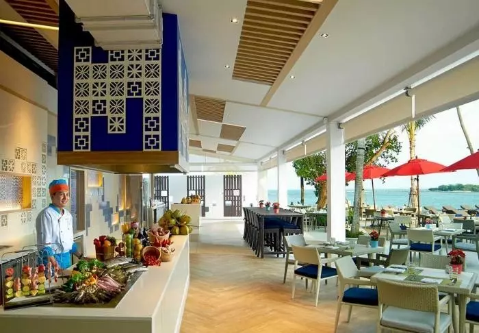 Myös ruokailun suhteen on valinnanvaraa. Resortissa on 6 ravintolaa, joissa on tarjolla mm. thaimaalaista ruokaa, italialaisia herkkuja ja taatusti tuoretta kalaa ja äyriäisiä.