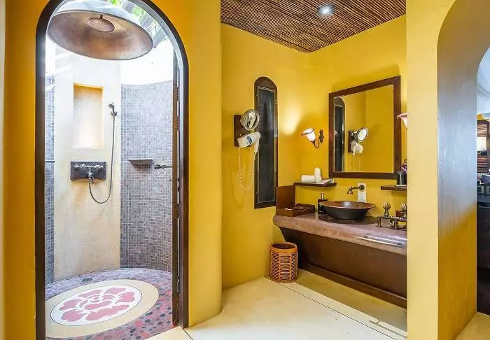 Majoituspaikkana Santhiya on yksinkertaisesti upea. Jokaisessa huoneessa ja huvilassa on oma ainutlaatuinen viehätyksensä ja paljon ylellisiä yksityiskohtia. Monista avautuu vaikuttava näköala lahdelle ja merelle, ja joissakin on jopa oma uima-allas, mikä luo täydelliset puitteet romanttiselle lemmenlomalle tai rentouttavalle perhelomalle. Kaikki huoneet ovat kauniisti sisustettuja, ja niitä koristavat puusta veistetyt yksityiskohdat. Käytettävissäsi ovat kaikki nykyaikaiset mukavuudet, kuten ilmastointi, WiFi, taulutelevisio, minibaari ja tallelokero. Sängyissä on hyttysverkot. Kylpyhuoneessa on ilmaisia kylpytuotteita, hiustenkuivaaja, kylpytakit ja tohvelit. Aamulla on mukava aloittaa päivä kupillisella kahvia tilavalla parvekkeella, joka on kalustettu päivävuoteella ja kattotuulettimella.