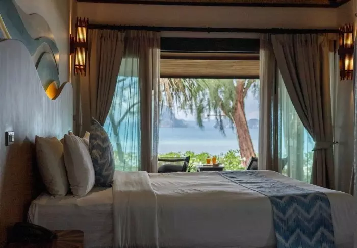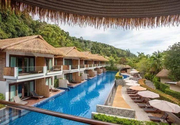 Resort on sisustettu viehättävään thaityyliin, ja sen alueelta avautuvat henkeäsalpaavan upeat näköalat Andamaanienmerelle ja ympäröiville karstikallioille.