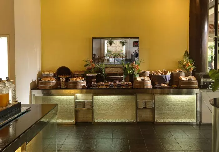 Hotellissa on lisäksi kahvila ja ravintola, jossa tarjoillaan aamiaista, lounasta ja illallista.