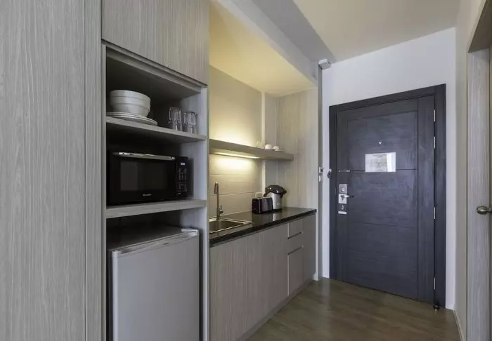 Yövyt yhdessä resortin tilavista studioista, jotka ovat kooltaan jopa 54 m2. Avoin ratkaisu luo kodikkaan ja mukavan ilmipiirin. Käytössäsi ovat mm. ilmastointi, TV, WiFi, työpöytä, kahvin- ja teenvalmistusvälineet sekä ilmaiset hedelmät saapuessasi ja pullotettu kivennäisvesi koko yöpymisesi ajan. Minibaarissa on myös hyvä valikoima myöhäisillan tunteja varten, jolloin voit nauttia juomia omalla terassillasi rentoutuessasi riippumattosohvalla, jossa on tilaa kahdelle. Kylpyhuone on jaettu kahteen osaan, joissa on erillinen suihkualue. Voit odottaa suihkussa käymistä puoliavoimessa suihkussa, jossa on ilmaisia hygieniatarvikkeita.