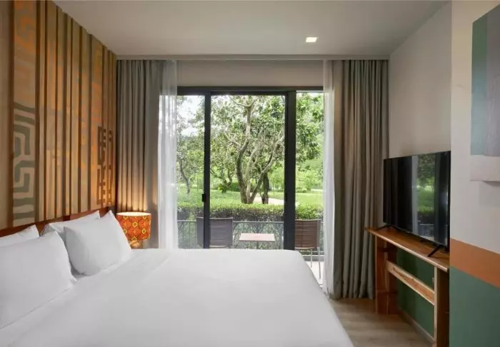 Resortissa on 275 huonetta, jotka on sisustettu moderniin thaimaalaiseen tyyliin vaaleilla ja hillityillä väreillä. Kaikissa huoneissa on parveke, WiFi, TV, ilmastointi, minibaari, kirjoituspöytä ja pieni oleskelualue. Kylpyhuoneessa on sadesuihku, hiustenkuivaaja, kylpytakit ja tohvelit.