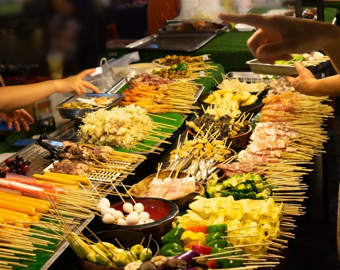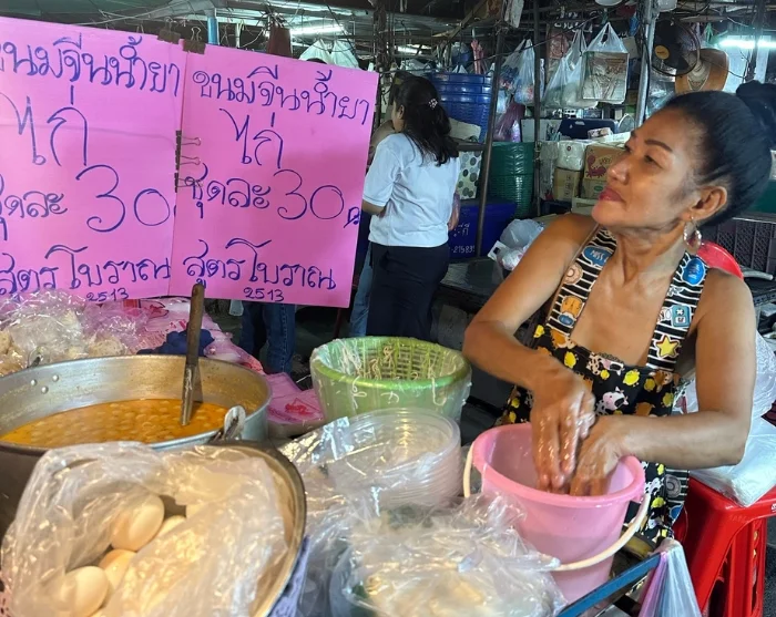 Seuraava etappi on paikallinen iltatori, missä on aikaa kierrellä katselemassa myyntikojuja. Täällä tutustut paikallisiin herkkuihin, kuten haudutettuun possunjalkaan (khao kha mu), kookosvanukkaaseen ja tahmeaan riisiin kananmunalla (bua loi khai waan).