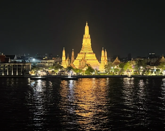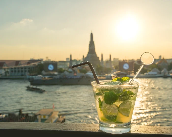 Ilta huipentuu rennoissa tunnelmissa Chao Phraya -joen rannalla sijaitsevassa rooftop-baarissa, josta on hieno näköala valaistuun Wat Arun -temppeliin. Tästä ei maisema parane!