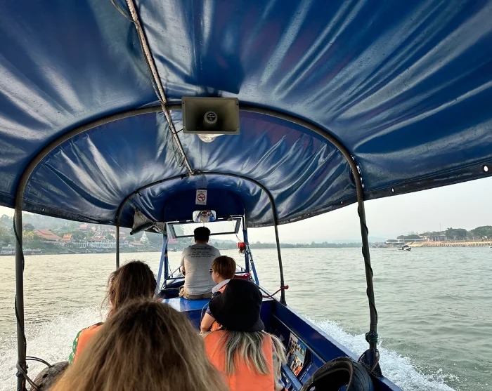 Lounaan jälkeen on vuorossa rentouttava veneretki Mekongjoella, jonka toisella rannalla voit nähdä Laosin ja toisella rannalla Myanmarin.