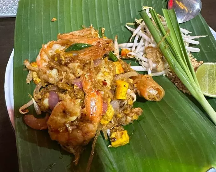 Saavutat suositun Pad Thai -ravintolan, joka on saanut Bib Gourmand – tunnustuksen. Se on Michelin-oppaan myöntämä tunnustus joka annetaa ravintolalle, jotka tarjoavat hyvin vlmistettua ruokaa kohtuulliseen hintaan. Saat maistella herkullista kansallisruokaa banaaninlehdiltä tarjottuna ja jopa nähdä keittiössä, miten annos valmistuu.
