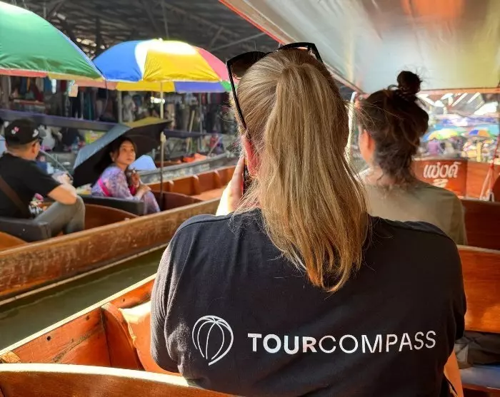 Laskeudut Bangkokin lentokentälle, kuljet maahantulotarkistuksen läpi ja noudat matkatavarasi. Oppaasi odottaa tuloaulan ulkopuolella. Tunnistat oppaan helposti, sillä hänellä on yllään TourCompass-univormu ja kädessään TourCompass-kyltti. Sinut kuljetetaan hotelliisi, jonne on noin 1½ tunnin ajomatka.