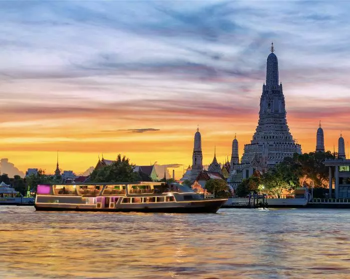Illan päätät rennossa kattobaarissa Chao Phraya -joen rannalla, ihaillen valaistua Wat Arun -temppeliä. Näköala on yksinkertaisesti vertaansa vailla!