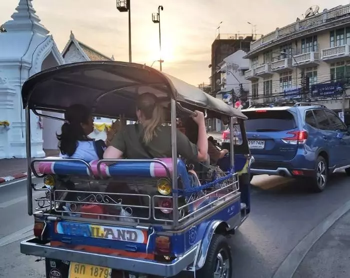 Bangkokissa on laaja valikoima monenlaisia kulkuvälineitä, joten sinun ei tarvitse huolehtia pahamaineisesta liikenteestä. Moni valitsee tuk-tukin tai tilaa kyydin Grab-sovelluksen kautta, jokitaksit ovat myös suosittuja ja muodostavat oleellisen osan julkista liikennettä, pysähtyen monilla kaupungin tärkeimmistä nähtävyyksistä. Lisäksi skytrain kulkee kaupungin pilvenpiirtäjien välissä tarjoten nopean, kätevän ja edullisen tavan liikkua.