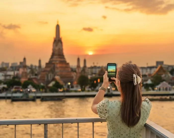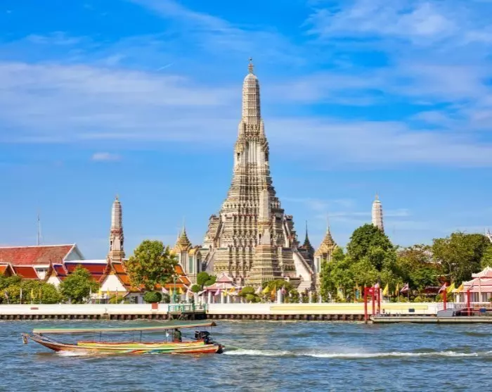 Illan päätät rennossa kattobaarissa Chao Phraya -joen rannalla, ihaillen valaistua Wat Arun -temppeliä. Näköala on todella henkeäsalpaava!