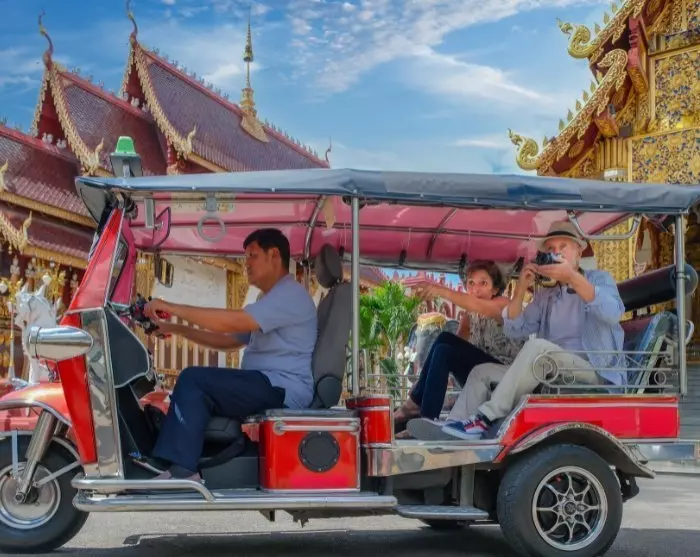 Kun liikut Bangkokissa, sinun ei tarvitse huolehtia pahamaineisesta liikenteestä, sillä kaupunki tarjoaa laajan valikoiman kulkuneuvoja. Monet käyttävät tuk-tuk takseja tai Grabia, mutta jokitaksit ovat myös suosittuja ja muodostavat merkittävän osan julkisesta liikenteestä, pysähtyen moniin kaupungin tärkeisiin nähtävyyksiin. Lisäksi löytyy Sky Train, joka kiemurtelee kaupungin pilvenpiirtäjien välissä tarjoten hyvän, nopean ja edullisen tavan liikkua.
