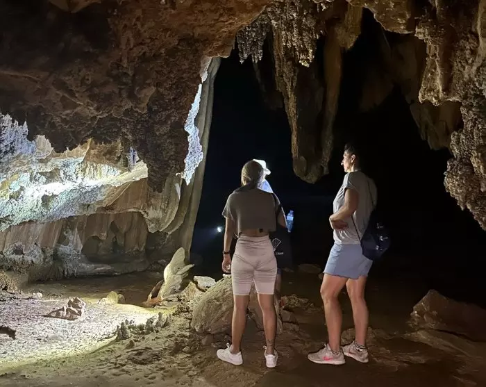 Vaihtoehtoisesti voit liittyä jännittävälle vaellukselle viidakon halki alueen upeaan tippukiviluolaan, Koralliluolaan. Muista ottaa mukaan vettä ja hyvät, suljetut kengät sekä huomioida, että sateisella kaudella saattaa olla liukasta. Sinut viedään oppaasi kanssa pitkähäntäveneellä vaelluksen aloituspaikalle. Vaelluksen aikana koet viidakon vaikuttavan kasvillisuuden, ja opas kertoo eri lajeista matkan varrella. Saatat myös havaita joitakin viidakon lintuja ja hyönteisiä. Noin 45 minuutin jälkeen saavut laguunille, missä bambulautta odottaa viemään sinut 15 minuuttia kestävälle matkalle Koralliluolaan. Luolan sisällä näet kauniita stalagmiitteja ja stalaktiitteja, jotka muistuttavat elefantteja, noitia ja käärmeitä. Tämän jälkeen palaat samaa reittiä takaisin.