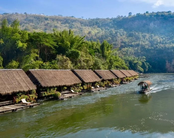 Maittavan aamiaisen jälkeen on uloskirjautumisen aika, sillä seuraavaksi matkustat pitkähäntäveneellä River Kwai Jungle Rafts -flotelliin. Voit jättää matkatavarasi säilytykseen, koska sisäänkirjautuminen on vuorossa vasta myöhemmin päivällä.