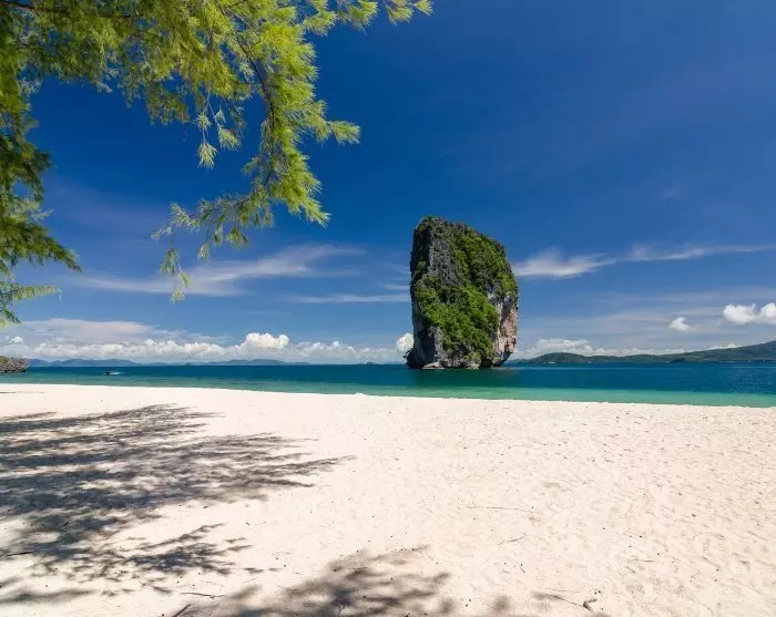 Noin 30 minuutin kuluttua saavut Koh Podalle, joka on yksi Andamaanienmeren kauneimmista saarista. Saari tunnetaan puhtaista rannoistaan, joilla pehmeä, valkoinen hiekka kohtaa kristallinkirkkaan veden. Täällä voit snorklata trooppisten kalojen joukossa, uida tai nauttia auringosta. Jos kaipaat rauhaa, voit etsiä varjoisen paikka puun alta ja ihastella häikäisevän kauniita näkymiä. Jos haluat tavoittaa ‘Robinson Crusoe’ -tunteen, kävele rantaa pidemmälle löytääksesi oman pienen rauhallisen palan paratiisia. Mitä kauemmas kuljet saarella, sitä enemmän Robinson Crusoe-tunnelmaa saat.