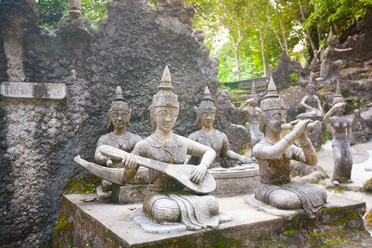 • Opastettu kierros Koh Samuilla, ml. Buddha-temppeli, ”Grandmother & Grandfather Rocks” -kivimuodostelmat, Wat Kunaram -temppeli, Na Muang -vesiputous (nro 1) ja vierailu pääkaupungissa Nathonissa