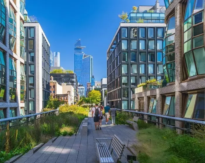 Chelsea Marketin jälkeen kävelykierros jatkuu High Line Park -puiston vanhalle junaradalle, joka sijaitsee vilkkaiden katujen yläpuolella. Nykyään rautatie on luonnollinen osa kaunista High Line Park -puistoa, josta on upeat näkymät kaupunkiin ja Hudson-joelle. Täällä oppaasi kertoo tarinoita alueen historiasta, samalla kun voit nauttia vihreästä keitaasta ja ottaa valokuvia kaupungin upeasta kaupunkisiluetista.