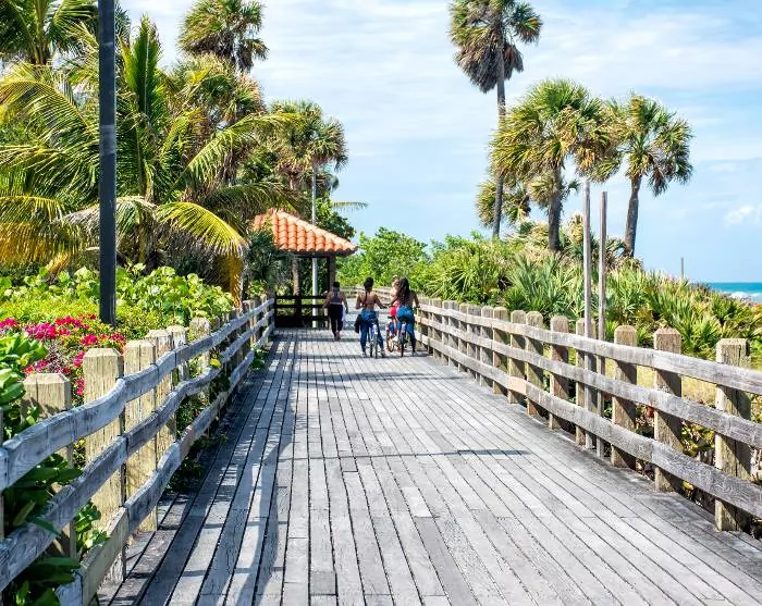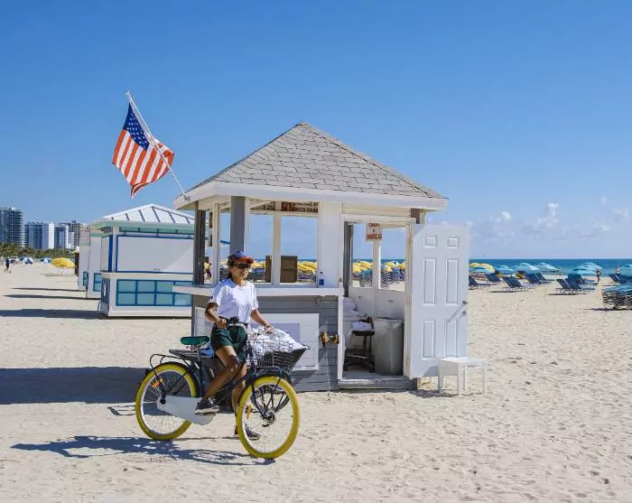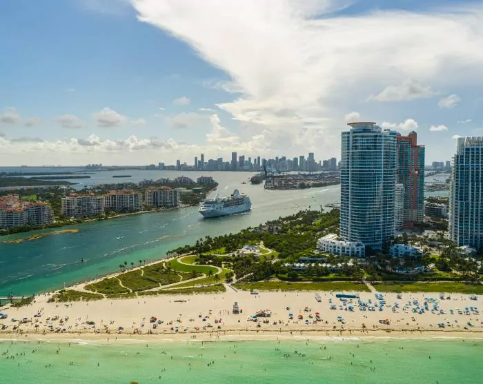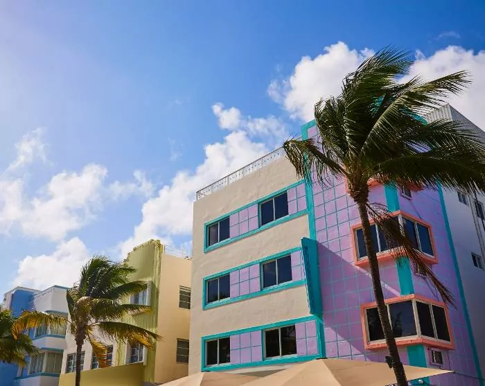 Tiedät heti, että lähestyt Miamia, kun kaupunkimaisema ja sen suuret rakennukset, suuret autot ja risteilyalukset alkavat korvata laajat näkymät merelle. Yövyt Miami Beachillä, joka tunnetaan kirkkaanvärisistä art deco -taloistaan, rannastaan ja kuuluisan Collins Avenue kaupoistaan.