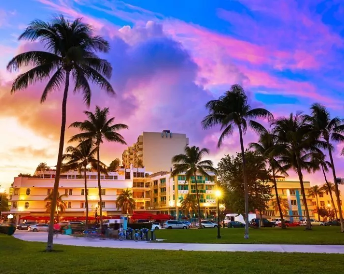 Luonnonympäristö vaihtuu suurkaupunkiympäristöön, kun suuntaat Miami Beachille Everglades Safari Park -safaripuiston jälkeen. Kun olet Miami Beachilla, jätä vuokra-autosi kaupungin toimipisteeseen myöhään iltapäivällä (lisätietoja on voucherissasi). Ota taksi tai Uber hotelliisi, joka ei ole kaukana.