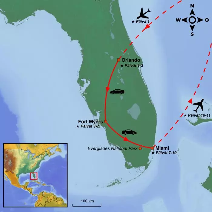 Haluatko rentoutua Floridan paratiisirannoilla? Haluaisitko kokea Evergladesin, kuubalaisen kulttuurin Miamissa ja viihdettä Orlandossa? Siinä tapauksessa suosittelemme tätä autolomaa juuri sinulle!