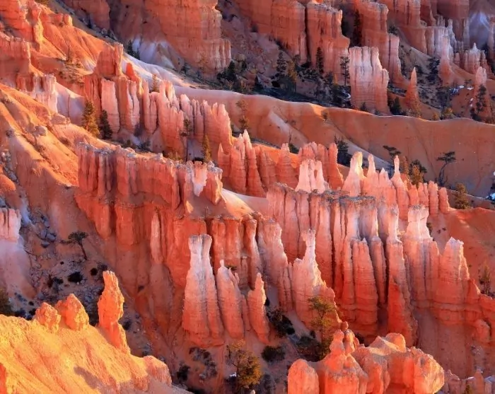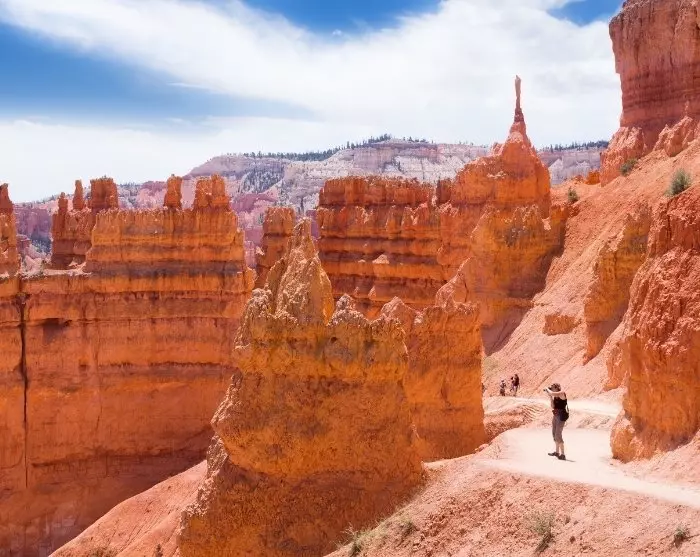 Bryce Canyon on sanalla sanoen uniikki. Korkeat, pylväsmäiset kalliotornit, niin kutsutut hoodoot, kohoavat kohti taivasta kuin maan uumenista alkunsa saaneet tippukivet. Hoodoot ovat kirkkaan oranssin, punaisen ja valkoisen värisiä, ja välillä tuntuu epätodelliselta kävellä jopa 30 metriä pitkien, amfiteatterin tavoin porrastettujen huippujen keskellä. Yksi puiston suosituimmista reiteistä on 2,1 kilometriä pitkä Navajo Loop Trail, jonka varrella on paljon hienoja näköalapaikkoja eri korkeuksilla. Reitin kautta pääset myös lähelle puiston korkeimpia hoodoita.
